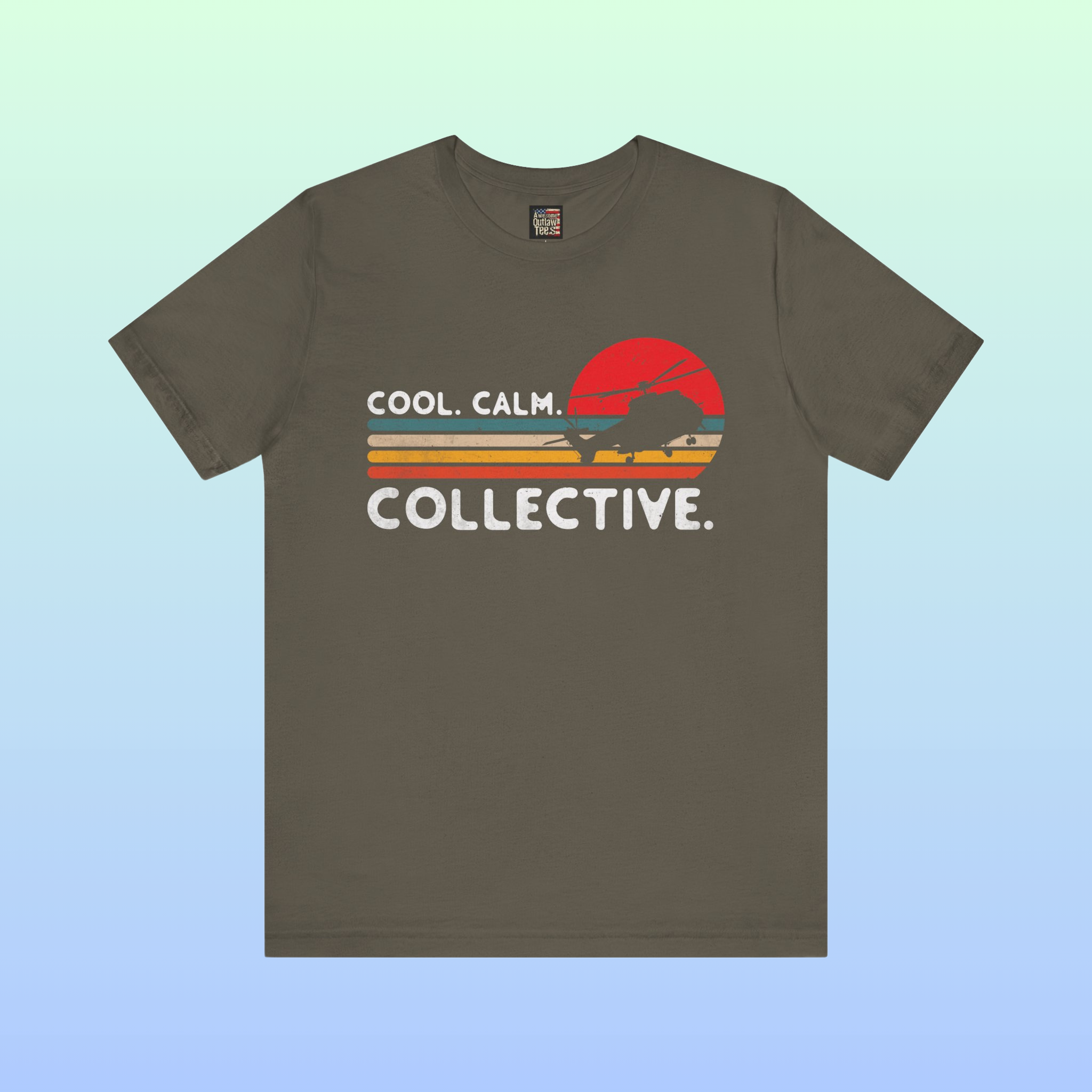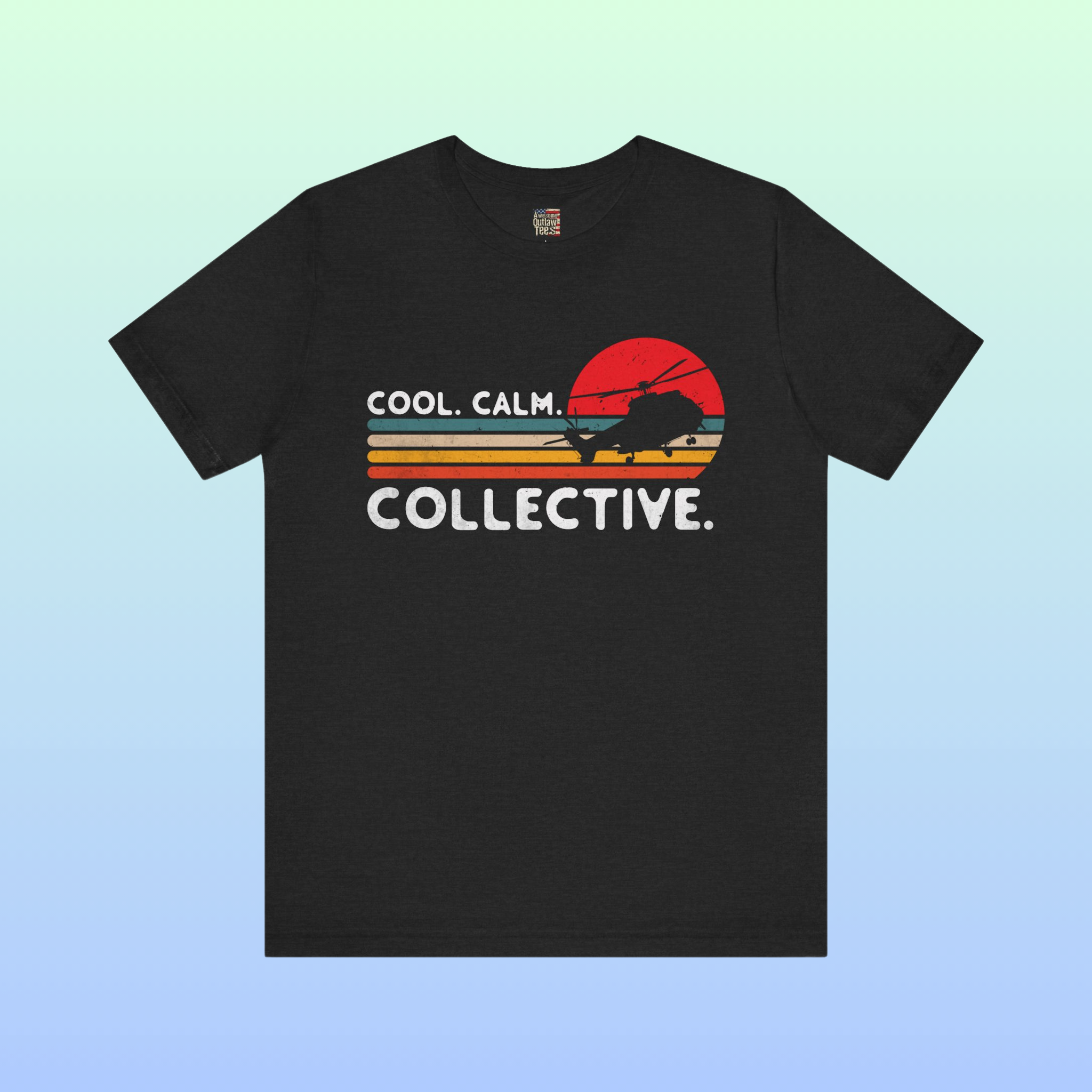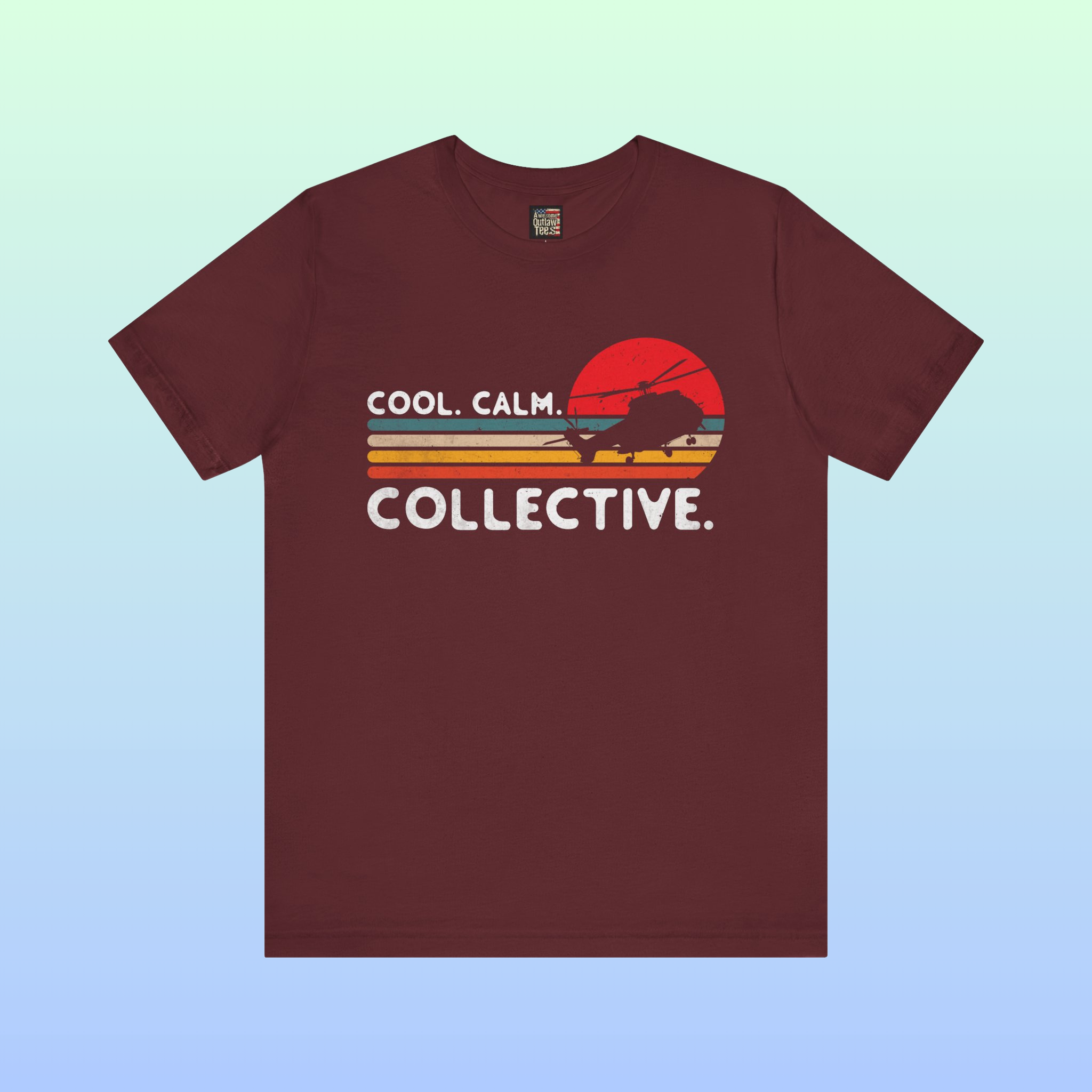 Keep your bearing when the pressure is on. This premium maroon tee features a retro vintage sunset, a military helicopter silhouette, and the motto “Cool. Calm. Collective.” Hand-printed in-house in the USA for aviators and patriots who demand real quality.